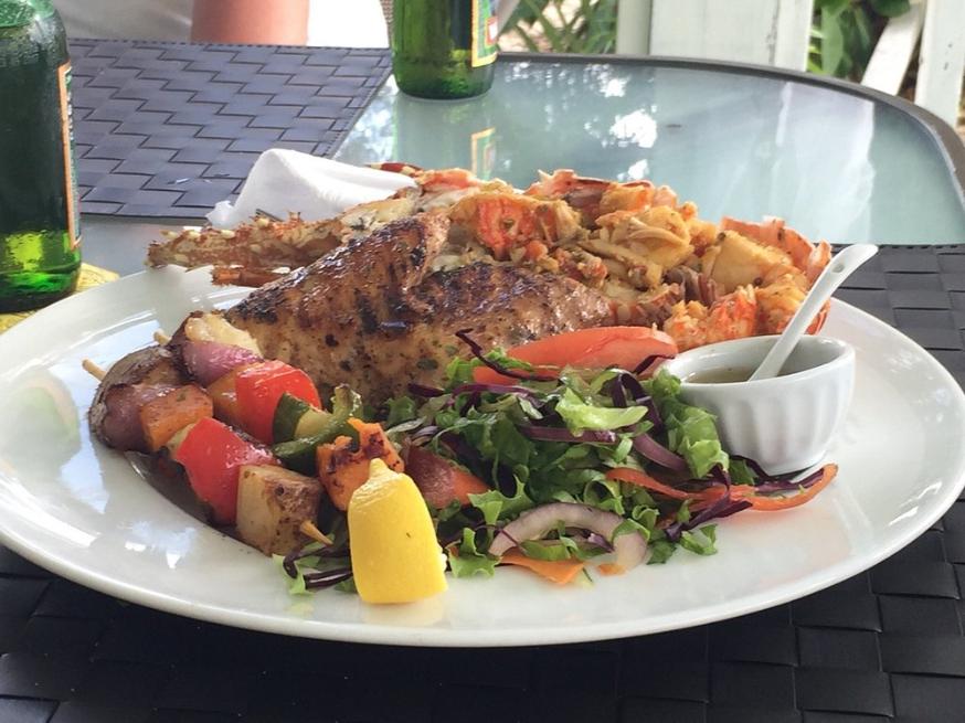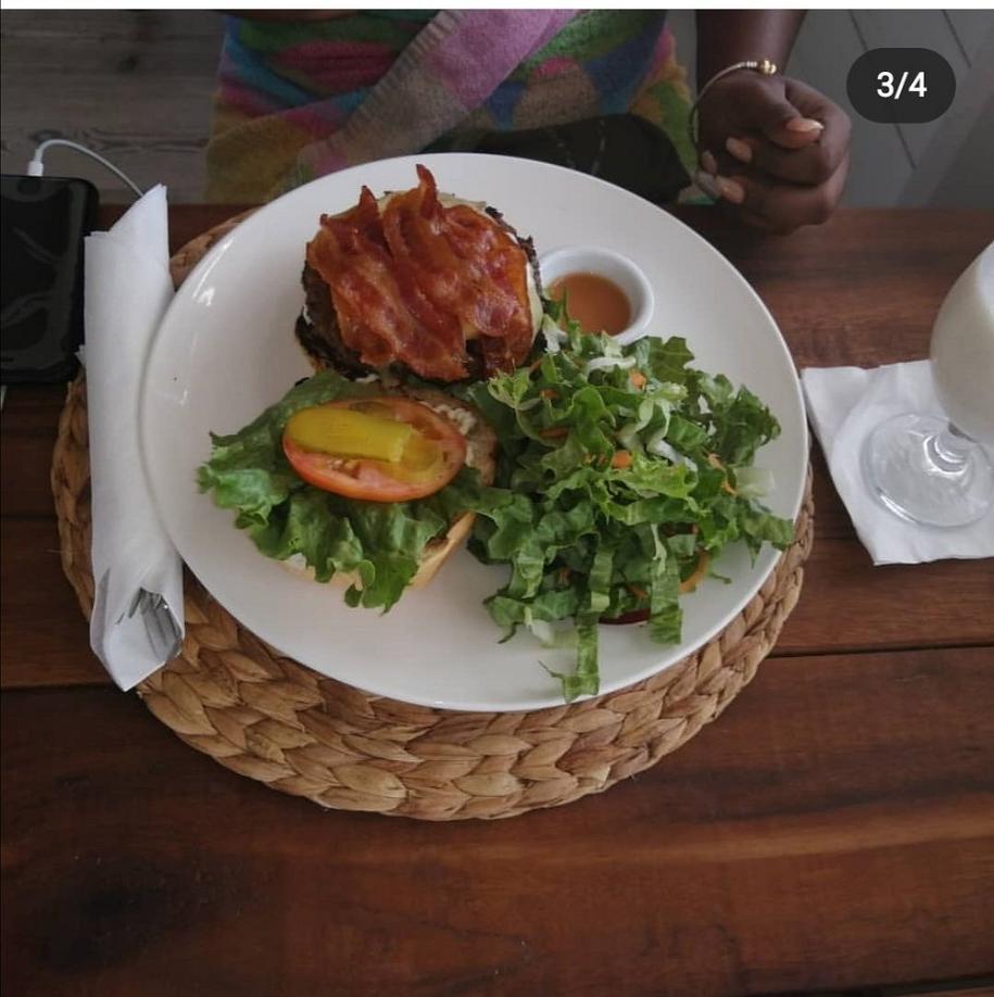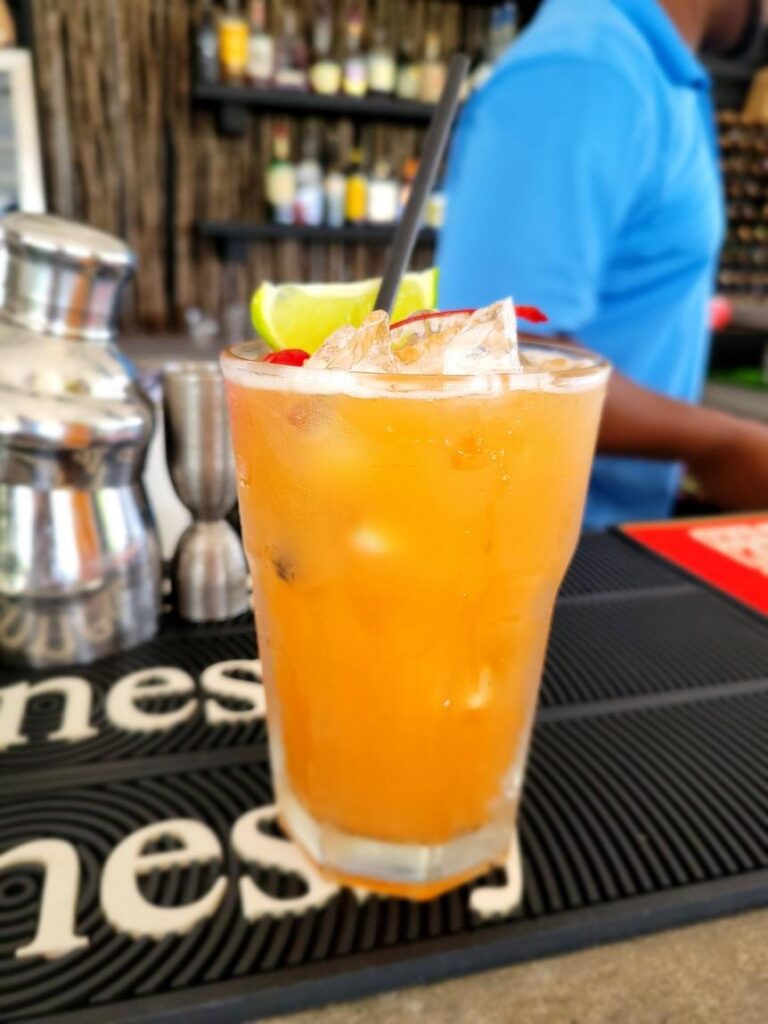 The menu highlights fresh local seafood and Caribbean favorites. Signature dishes include grilled Barbuda lobster, catch-of-the-day fish, burgers, and pizzas. All breads, desserts, and meals are made on-site by Executive Chef Ashani Cochrane and team. The bar is fully stocked with local and imported beers, wines, and spirits, and happy hour cocktails are available during special evenings. Try the Barbuda Smash cocktail.