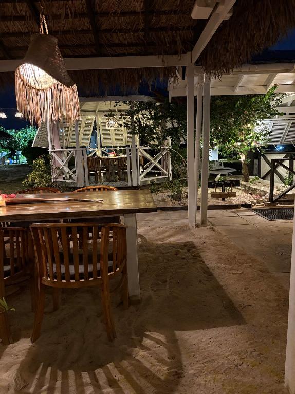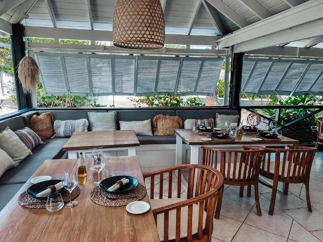 Casa Roots is located on Dickenson Bay in Saint John Parish, Antigua, nestled between the beach and a tranquil garden. The setting is romantic and elegantly casual, with open-air seating shaded by palms and soft lighting that complements the ocean breeze. The restaurant’s design blends natural textures with minimalist décor, offering a quiet, sensory-rich experience ideal for couples, small groups, and relaxed sunset dining.