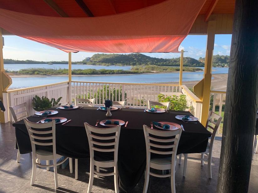 Sandra’s Island Fusion is located near Darkwood Beach in Saint Mary’s Parish, Antigua, just off Valley Road. The restaurant features a raised terrace overlooking a saltwater lagoon, offering a breezy, peaceful setting ideal for birdwatching and sunset views. The vibe is casual and welcoming, with color-coordinated table settings and attentive service. It’s well-suited for families, couples, and small groups seeking authentic Caribbean hospitality.