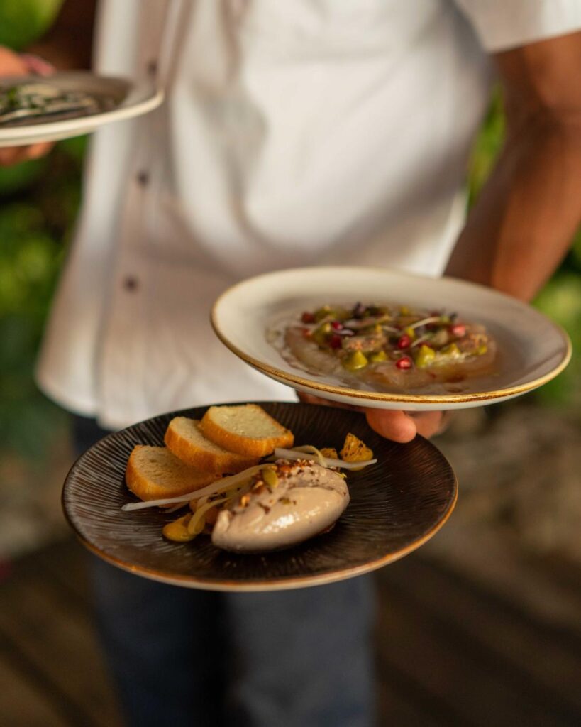 Sheer Rocks is perched atop a rocky cliff at Coco Bay Resort, overlooking Ffryes Beach on Antigua’s west coast. The setting features linen-draped daybeds, plunge pools, and open-air dining areas with uninterrupted ocean views. The atmosphere is romantic and upscale, with Mediterranean-inspired design elements and a focus on relaxed luxury. Guests can enjoy cliffside lounging during the day and candlelit dinners in the evening.