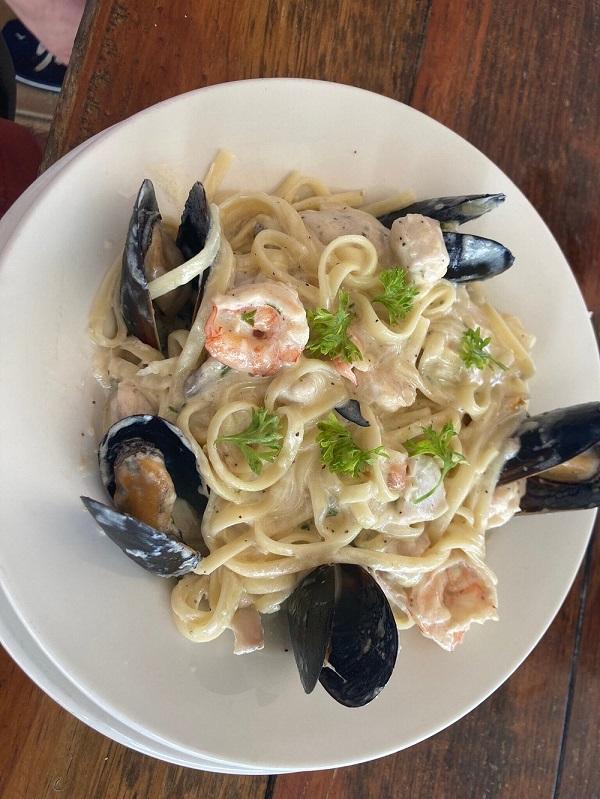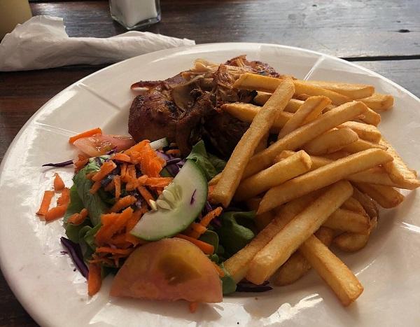 The bar offers rum cocktails, cold beers, and house punches. Vegetarian options are available.