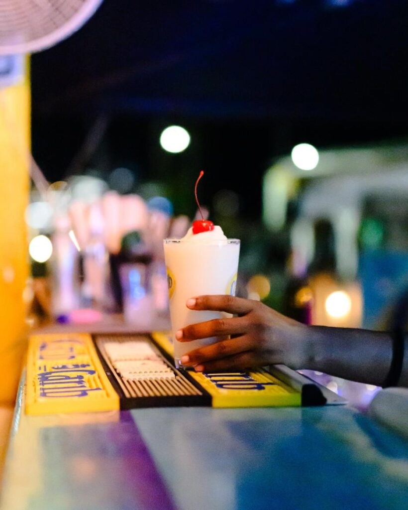 Located on Dockyard Drive in English Harbour, Flatties Flame Grill offers a rustic, open-air dining experience with a central flame grill that anchors the space. The vibe is casual and energetic, popular with both locals and visiting yacht crews. Wooden picnic tables, umbrellas and string lights create a laid-back atmosphere ideal for groups and families.