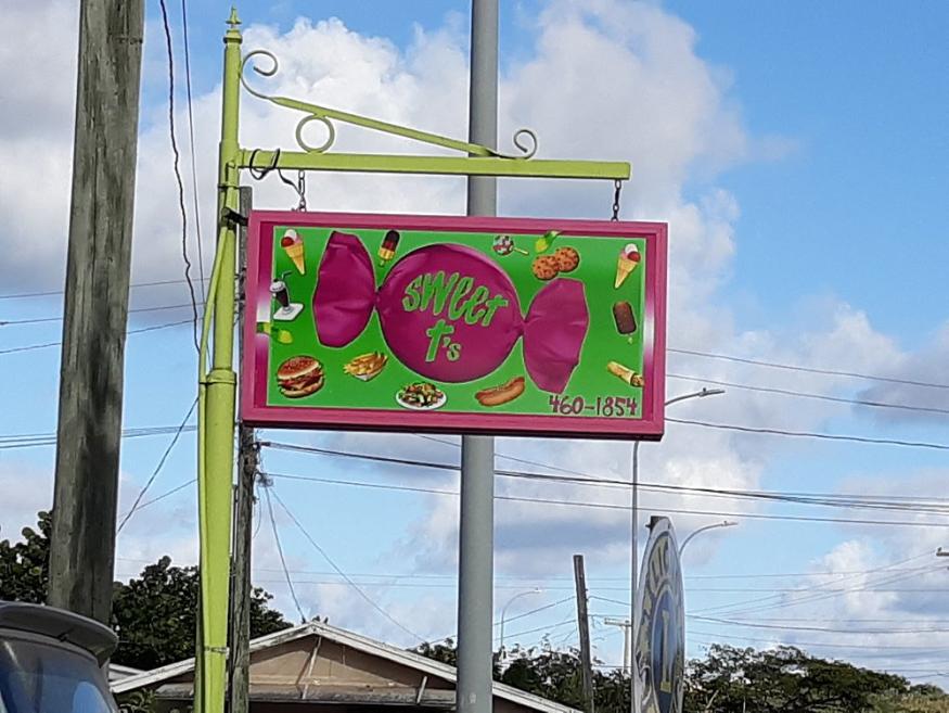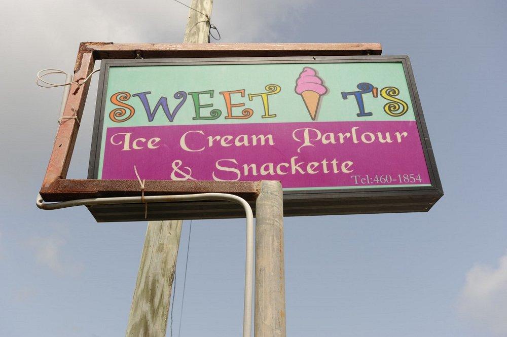 Sweet T’s Ice Cream Parlour & Snackette, affectionately known as Sweeties, is located on Falmouth Main Road next to Bailey’s Supermarket in Cobbs Cross, Antigua. This brightly colored roadside eatery is casual and family-friendly, offering both indoor and outdoor seating with a cheerful, welcoming vibe. The décor is simple but lively, with a play area for children and an open-air layout that makes it popular with locals, tourists, and sailors. Sweeties is best known for its wide variety of ice cream flavors, but it also serves Caribbean lunches and light evening meals. The atmosphere is relaxed and informal, making it an ideal stop for families, groups of friends, and yachties looking for a quick bite or a sweet treat.🍽️ Menu & Dietary Options