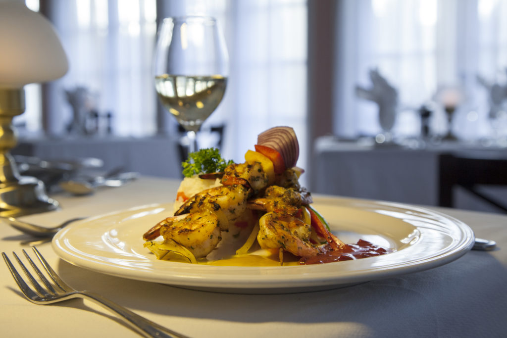 The Pineapple Grill serves Caribbean-inspired cuisine with American and international influences. The menu rotates seasonally but includes standout dishes such as: