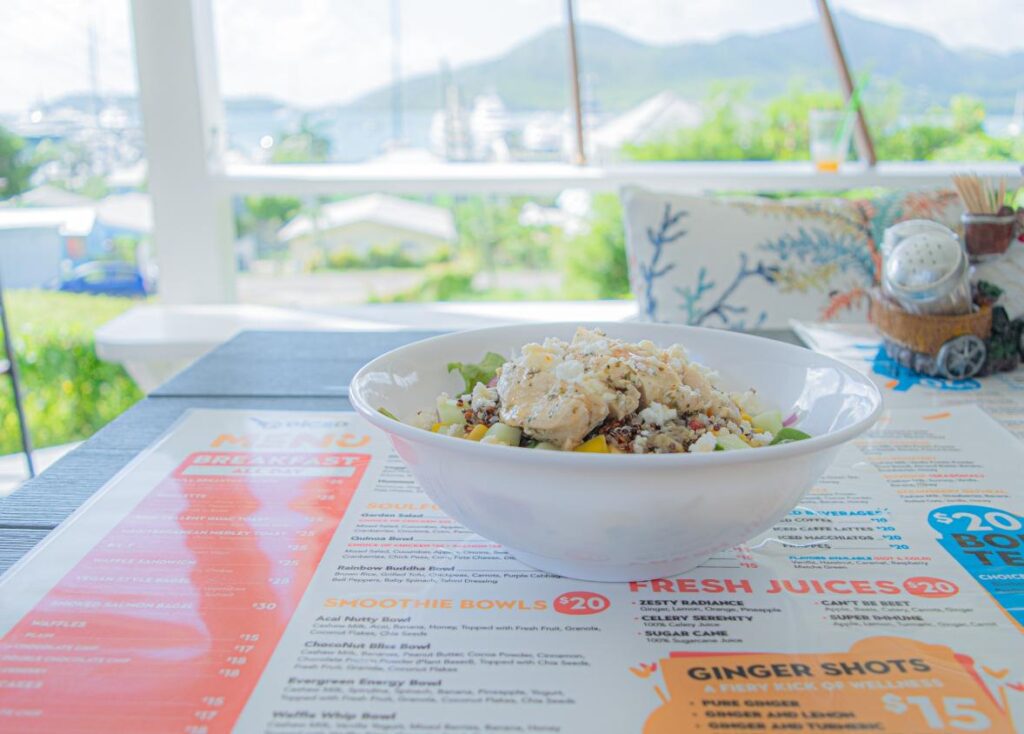 Located at the Energie Gym & Health Centre in English Harbour, Diced offers a vibrant, open-air setting with harbor views and a chilled Caribbean vibe. The décor is colorful and modern, with casual seating ideal for breakfast and lunch customers. It’s a popular stop for tourists exploring the marina and nearby trails, for gym patrons looking for a smoothie or light lunch menu, and locals who appreciate healthy food and juices.🥗 Menu & Dietary Options
